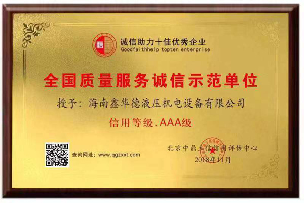 全国质量服务诚信示范单位